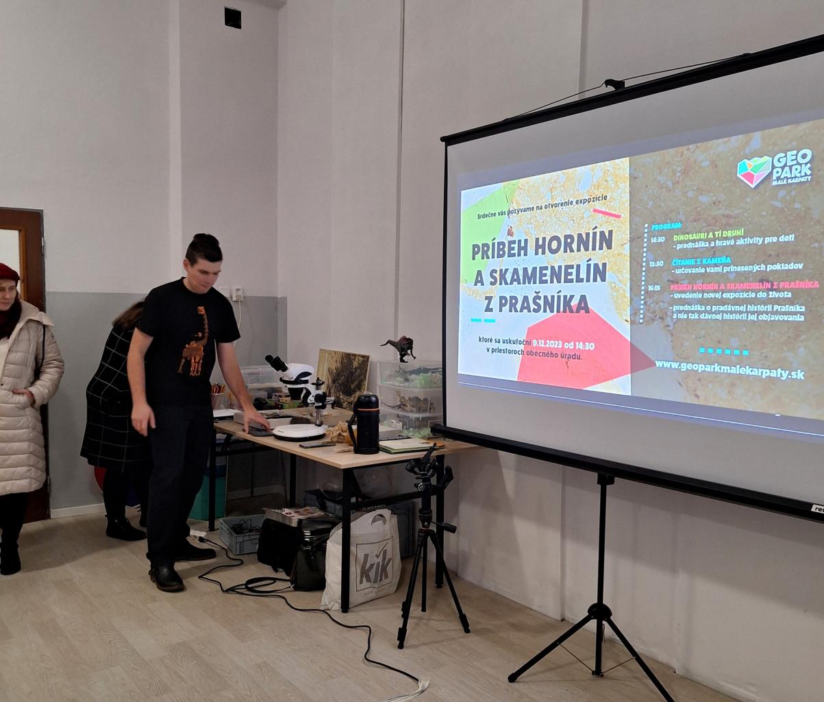 V sobotu 9.12.2023 sme slávnostne otvorili expozíciu pod názvom PRÍBEH HORNÍN A SKAMENELÍN Z PRAŠNÍKA, ktorá je umiestnená v priestoroch OcÚ. Súčasťou expozície je aj geologická knižnica, do ktorej literatúru daroval aj zapožičal Štátny geologický ústav Dionýza Štúra.