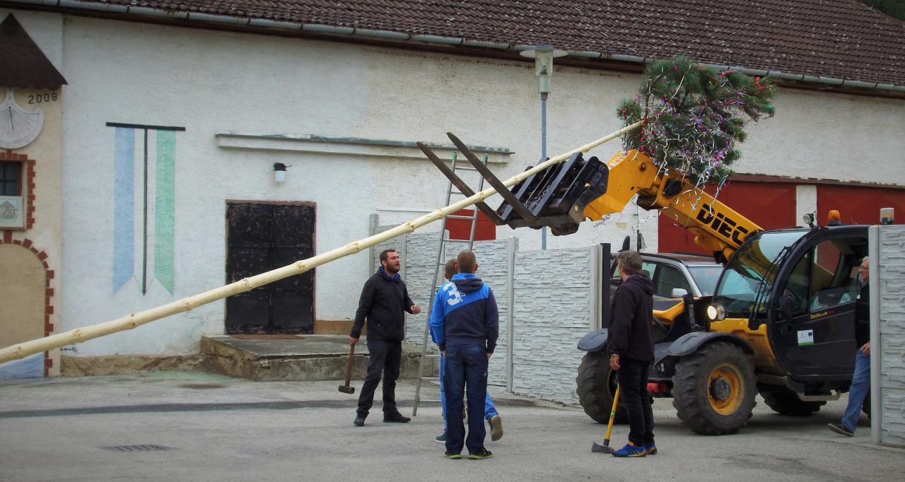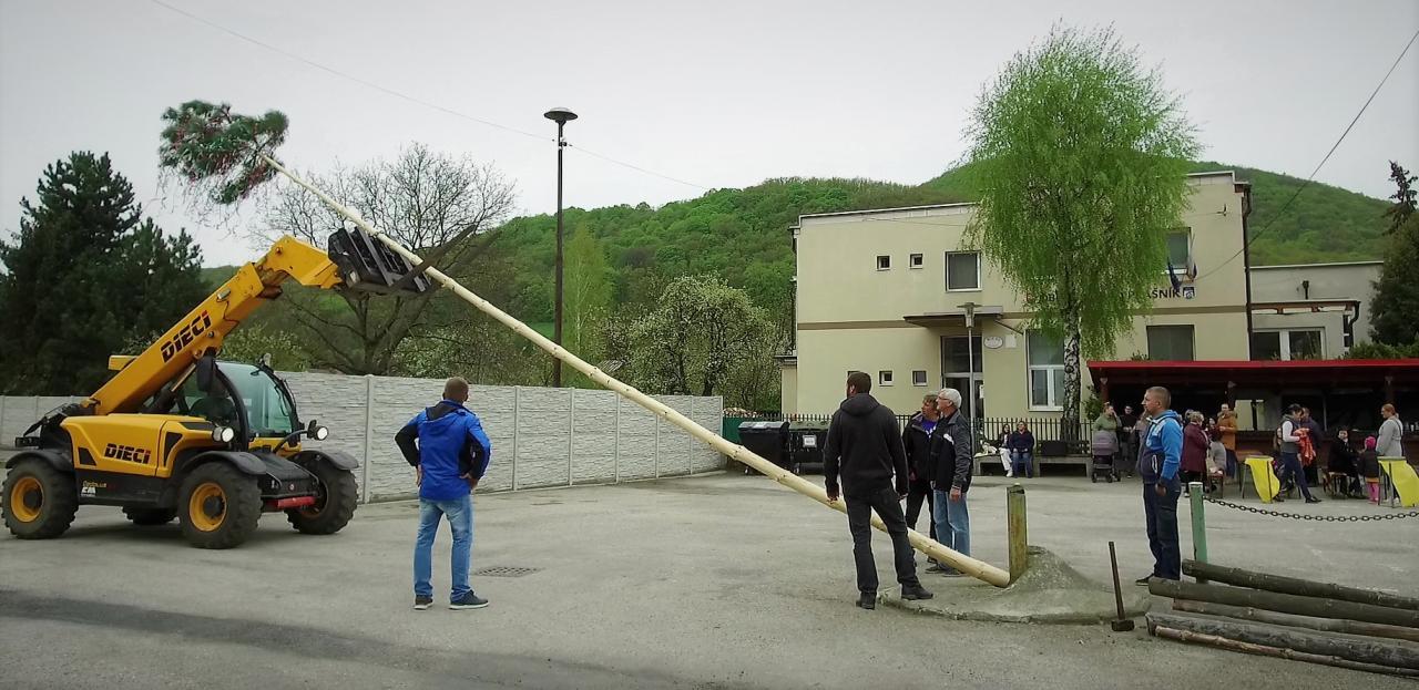 Máj sme stavali na námestí pred obecným úradom. Zaspievali aj Holešky a bolo aj malé občerstvenie...